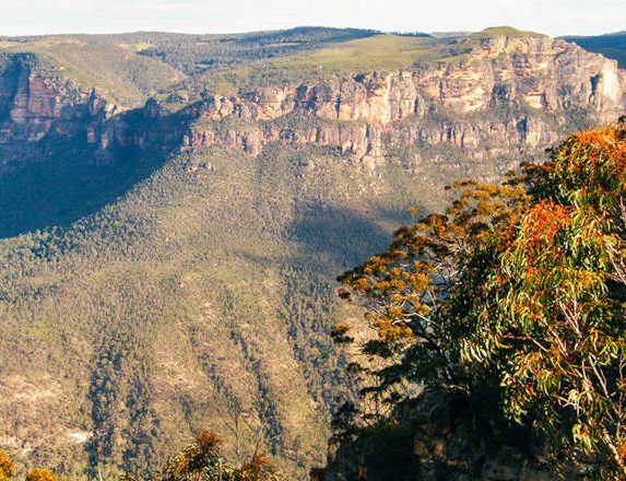 Perrys lookdown offers scenic views over Grose Valley, Blue Gum Forest and Mount Banks, on the western edge of Blue Mountains National Park.
