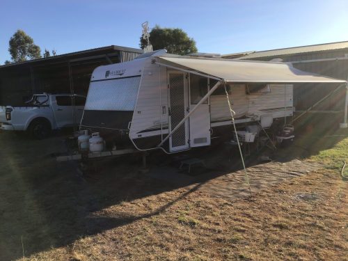 Two 70 ltr water tanks, two gas bottles, front boot, storage under bunks ,side storage and door left hand back of van.gas electric suburban hot water system,solar panel with one battery for lighting and off grid water pressure,two single beds ,full ensuite gas electric stove with oven and three gas one electric hot plates.Rego Dec25 and serviced each year at rego check.van has been looked after and in good condition for age some minor marks.