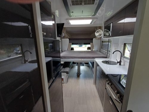 Full ensuite provides a separate shower, 12 Volt Flush cassette toilet, mirrored vanity with storage throughout