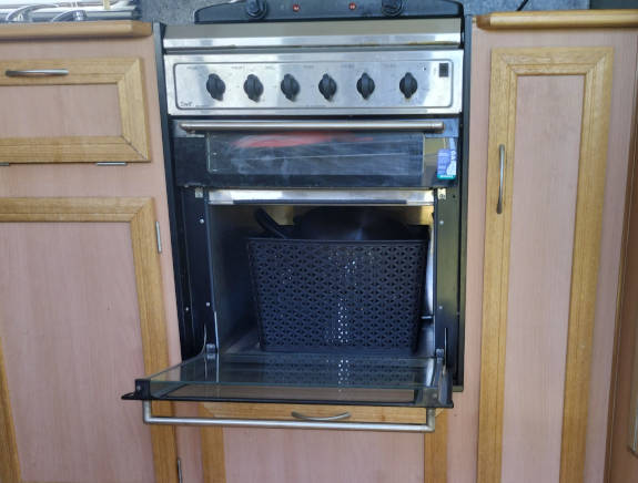 Ian and Jenni – who use the redundant oven to store pots and pans – say they won’t bother replacing the cooker until they decide the time is right to sell the caravan.