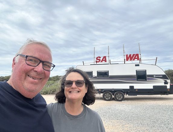 Graeme and Tracey, who plan to be away for eight months, travel in a 22’ Crusader Musketeer Empress towed by a Toyota Landcruiser.