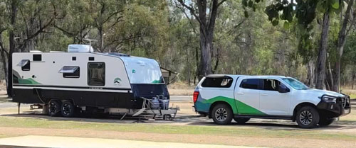 The couple travel in a BT50 towing a Snowy River SCR22