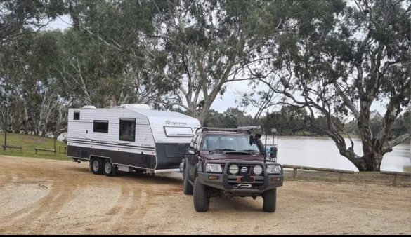 The couple travel in their 6-cylinder Nissan Patrol, originally bought to take them across the Simpson Desert. They have just replaced their 10-year-old caravan after it was written off by hail damage and now tow a 2016 semi off-road van.