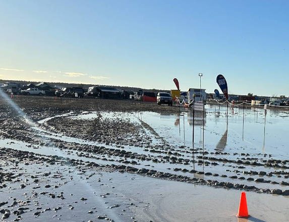 Grey nomads heading out to the iconic music festival – which kicked off yesterday – had been given an unseasonal soaking, with 20mm of rain falling across the festival grounds in one of the nation’s driest areas.