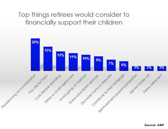 The survey conducted by AMP found that, despite wanting to support their children, seven in 10 Australians aged 65 and over were unwilling to compromise their own lifestyle to provide financial assistance.