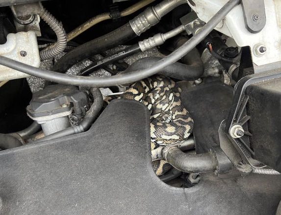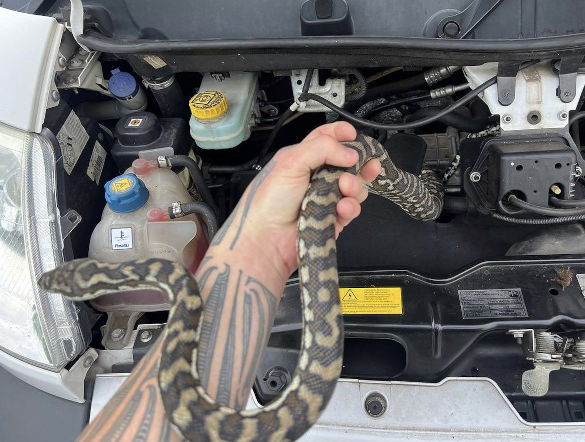 Last month, Mr Brown was called out to remove a Coastal Carpet Python from the engine bay of a campervan and, while it was a non-venomous species, it must have given the travellers quite a start when they spotted it.