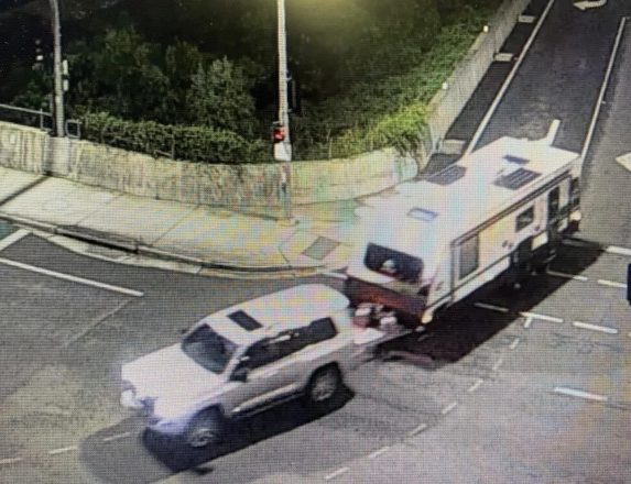 The LandCruiser was observed leaving the scene, towing the stolen caravan.