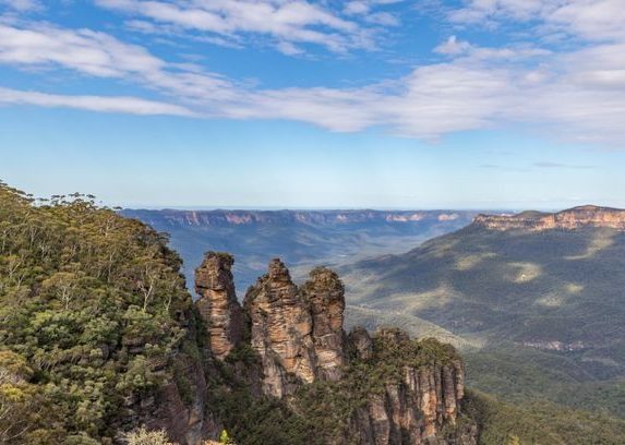 The Three Sisters is possibly the most famed of all Blue Mountains’ landmarks. Located at Echo Point near Katoomba, the unusual rock formation represents three sisters who, according to Aboriginal legend, were turned to stone.