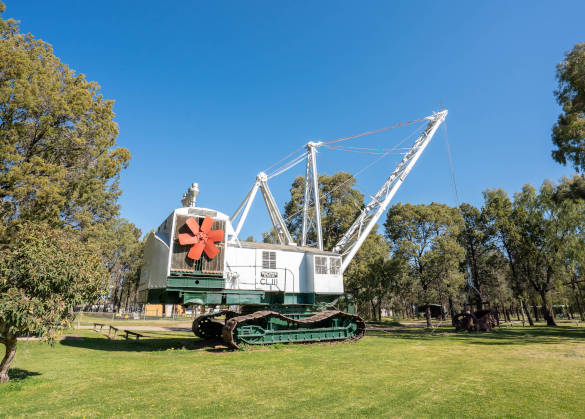 At the Lions Park, there is a very visible reminder of the town’s reason for existence. A giant Bucyrus class Erie Dragliner which was used to excavate the main irrigation channels in the Murray Valley and the Coleambally Irrigation Area sits there.