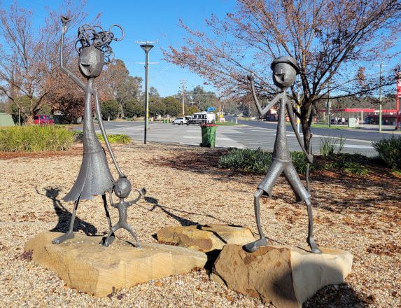 Tarcutta's famous ‘air horn arm pull’ steel statues. PIC: Cizza